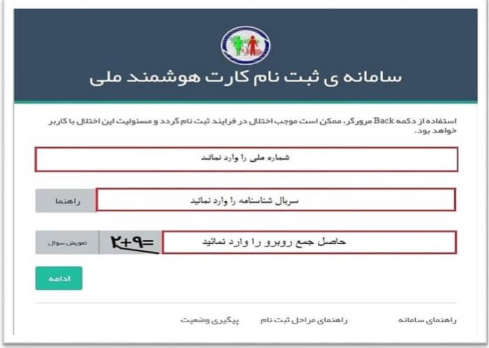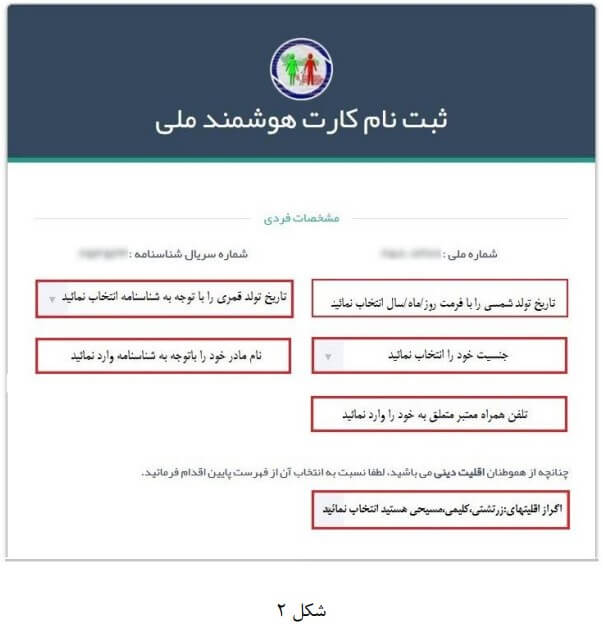 - در صورتی که اطلاعات وارد شده همچون تاریخ تولد و جنسیت با اطلاعات موجود در بانک اطلاعاتی سازمان ثبت احوال کشور مغایرت داشته باشد، متقاضی باید با در دست داشتن اصل شناسنامه به نزدیکترین اداره ثبت احوال محل سکونت خود مراجعه نماید.